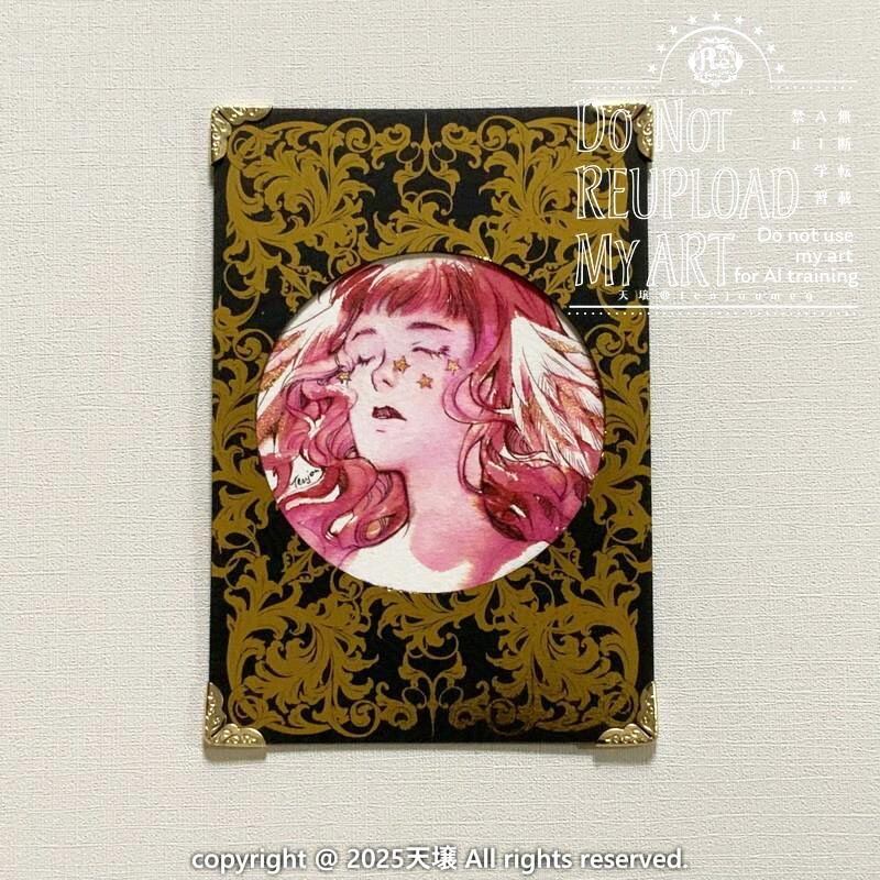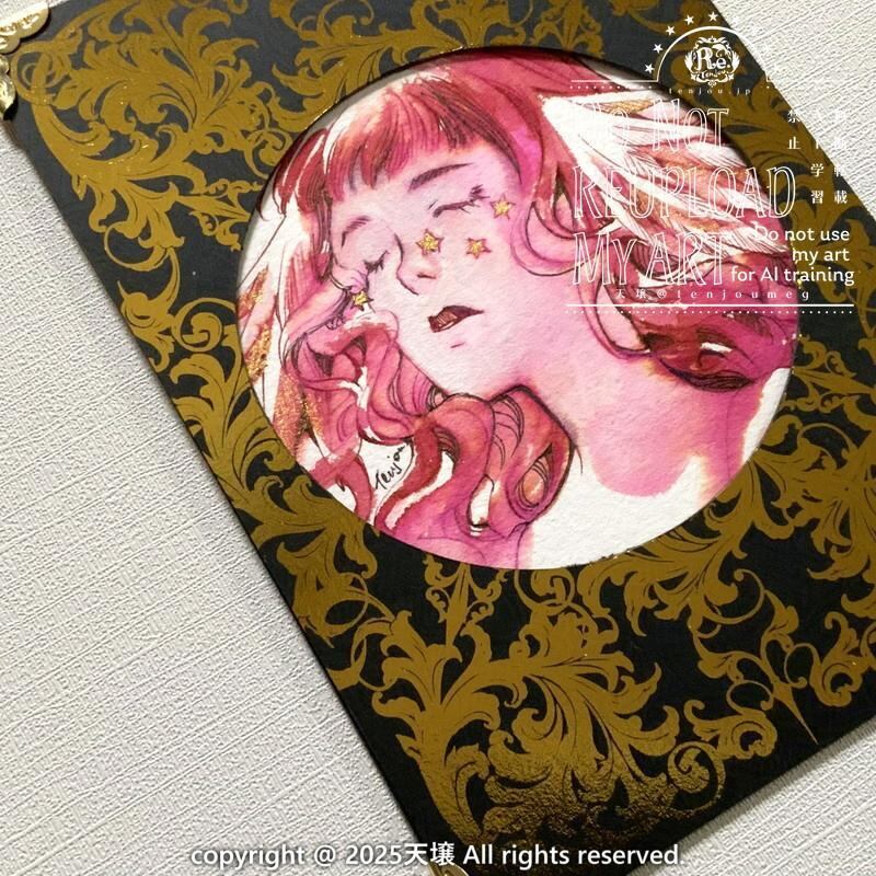 はがきサイズの箔押し台紙に入っていますので、そのまま飾っていただいても、四隅の金具(軽く押さえているだけなので簡単に外れます)を外してフォトフレームに入れて飾っても良いです。